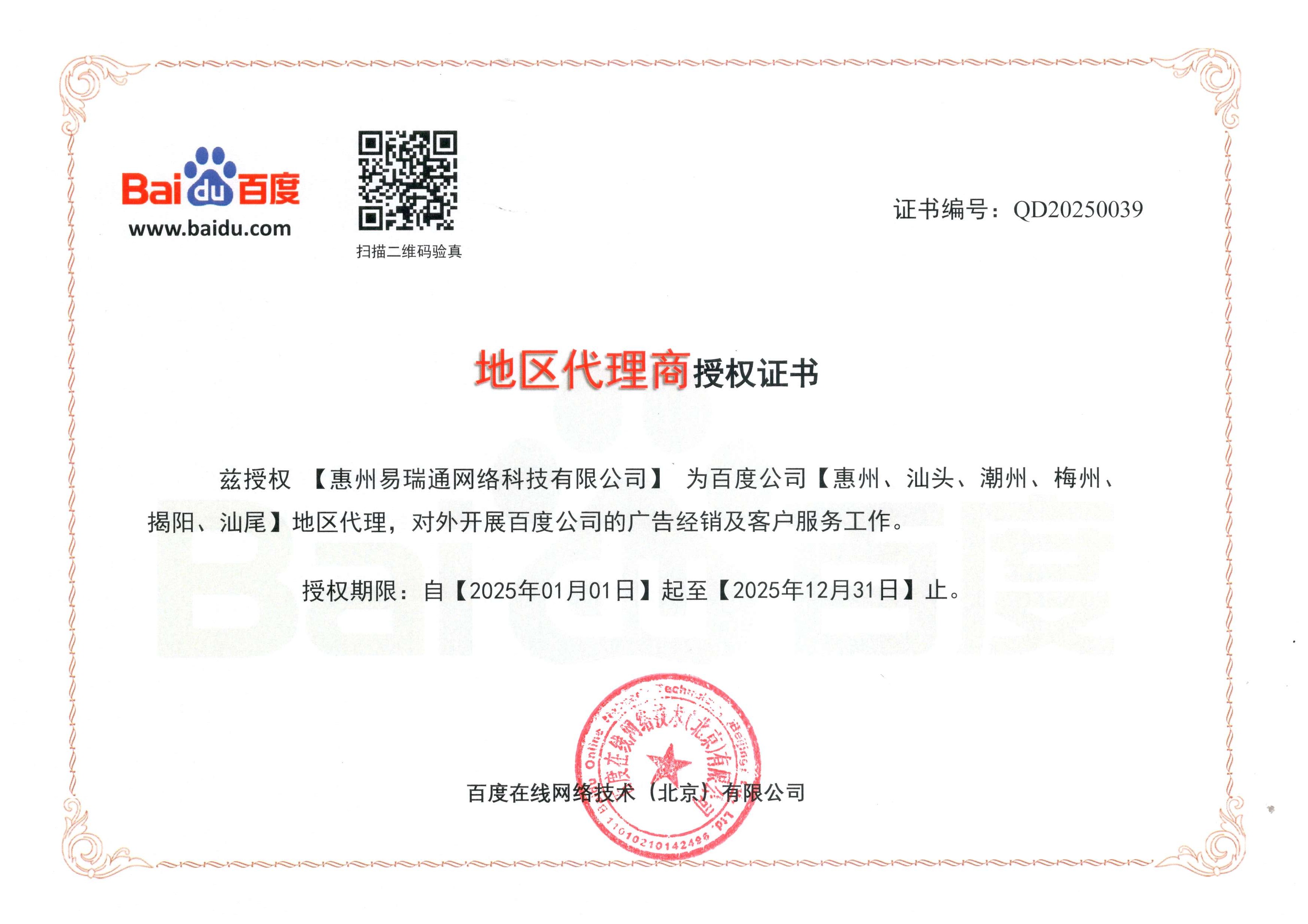 獲得百度粵東地區(qū)總代理權(quán)并建立“粵東百度營銷服務(wù)中心”