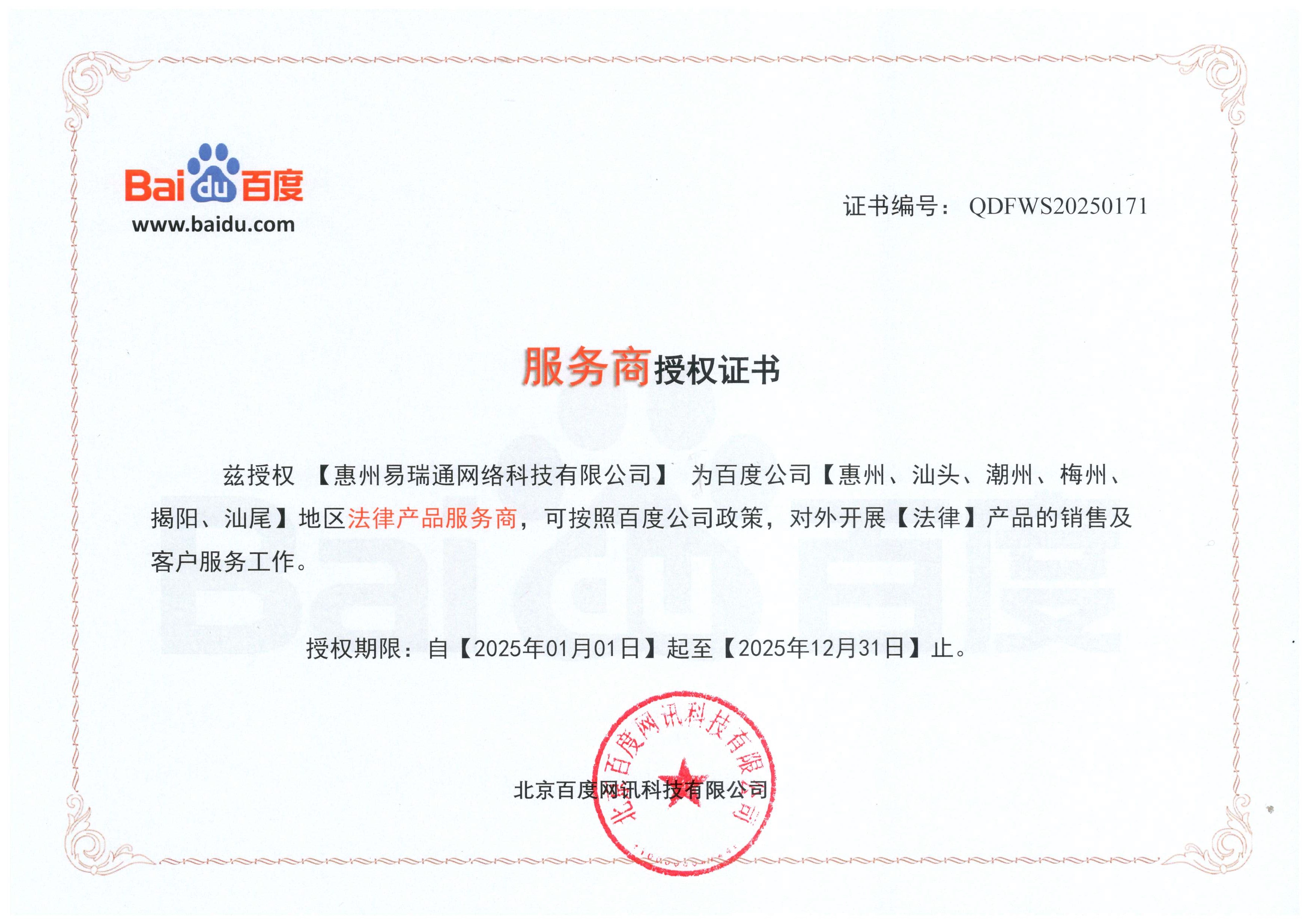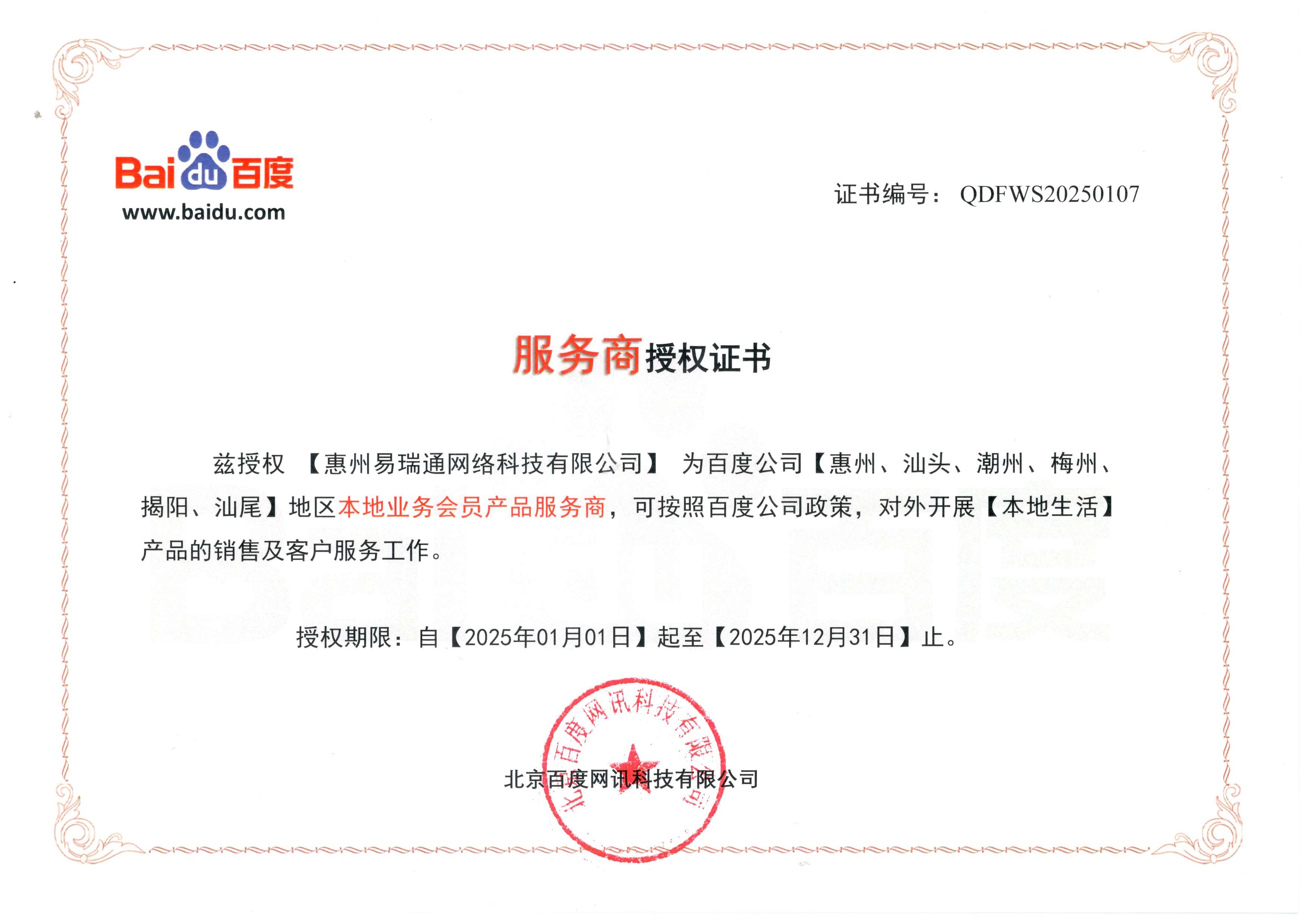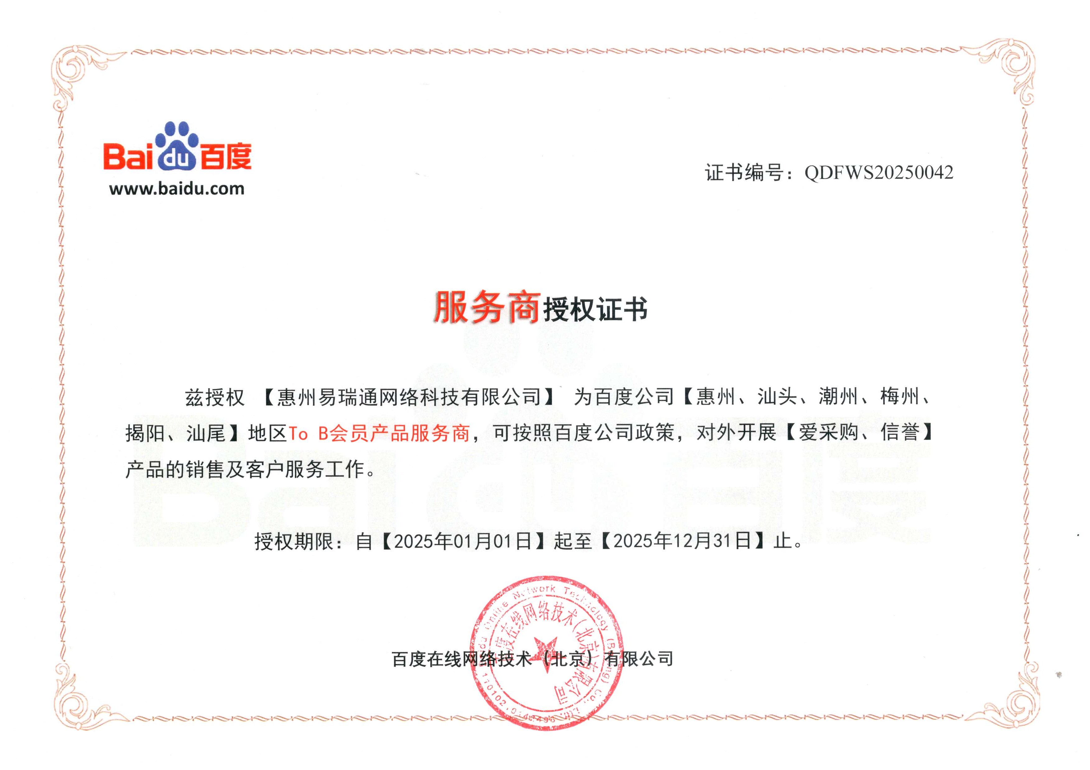 正式授權(quán)為“百度信譽產(chǎn)品”合作伙伴