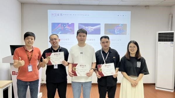 會議的最后是頒獎環(huán)節(jié)。公司設(shè)置了三個獎項:成果共享獎、杰出貢獻獎和積極參與獎。除了為獲獎?wù)哳C發(fā)榮譽證書外,公司還特別準備了精心挑選的小禮品,以感謝他們的辛勤付出。這些獎項分別由公司領(lǐng)導完成頒獎,并與獲獎?wù)吆嫌傲裟?。這一環(huán)節(jié)不僅是對大家努力的肯定,更是對未來工作的鼓勵和期待。